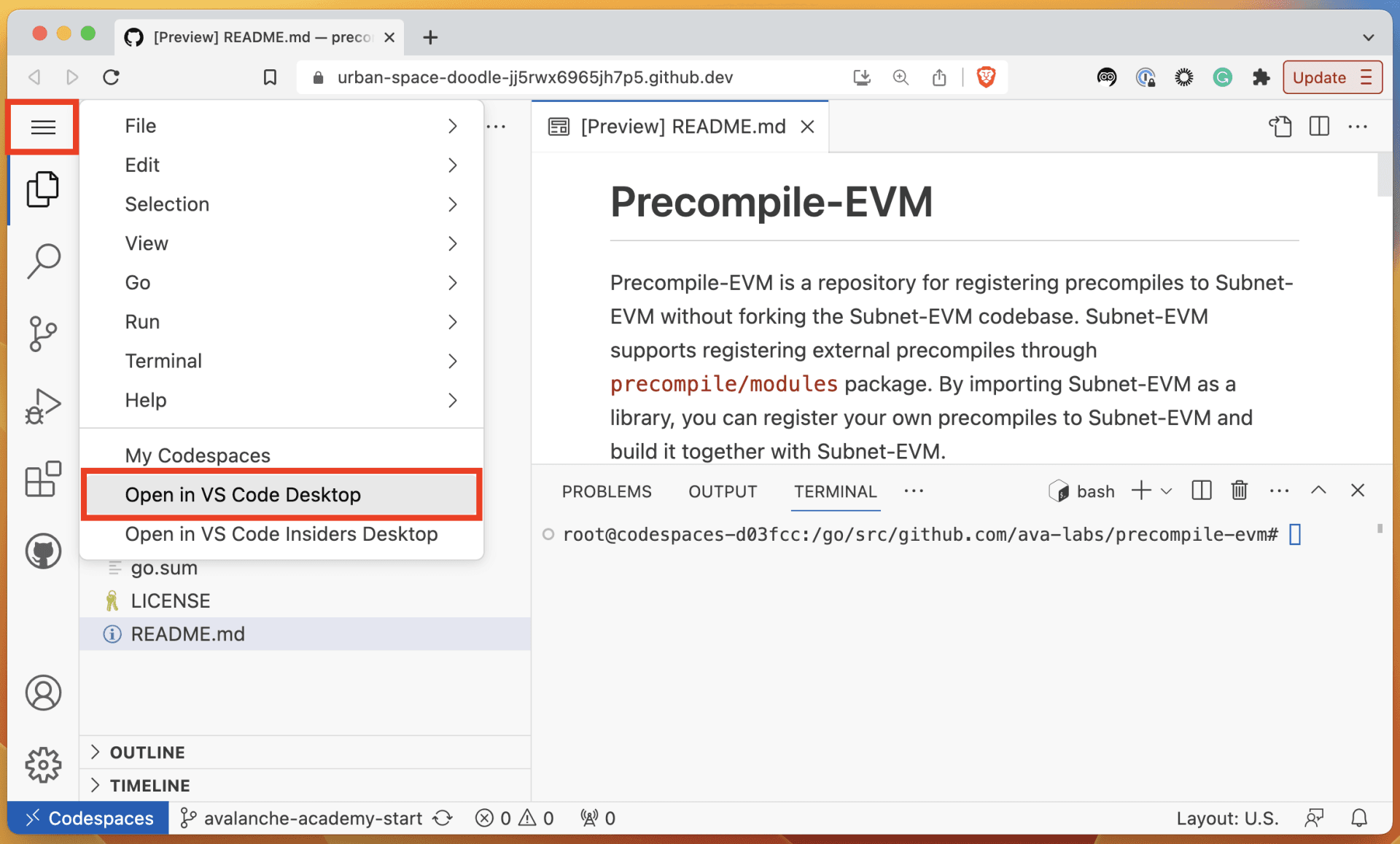 Optional: Open Codespace locally in Visual Studio Code